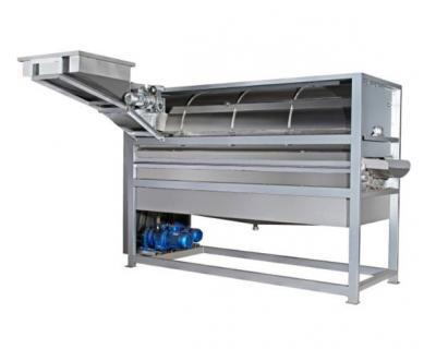 結(jié)構(gòu)特征及工作原理:該機(jī)主要有對(duì)壓輥三根、進(jìn)料斗、出汁斗、出皮斗、機(jī)架、傳動(dòng)等部分組成。工作時(shí)接通電源,將物料倒入進(jìn)料斗中,物料首先經(jīng)過(guò)第一和第二根壓輥的對(duì)壓擠破,然后進(jìn)入第一和第三壓輥進(jìn)行榨汁,皮從出皮斗排出,汁和部分肉從出汁斗排出,從而達(dá)到榨汁的目的;該設(shè)備除傳動(dòng)部位外其余均為不銹鋼制作。
