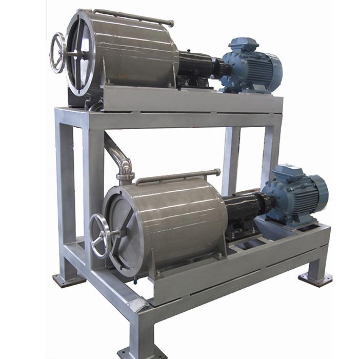 去殼打漿機(jī)作業(yè)原理:物料進(jìn)入篩筒后,由棍棒的回轉(zhuǎn)效果和造紙機(jī)械導(dǎo)程角的存在,使物料沿著圓筒向出口端移動(dòng),軌跡為一條螺旋線(xiàn),物料在刮板和篩筒之間的移動(dòng)過(guò)程中受離心力效果而被擦破。汁液和肉質(zhì)(已成漿狀,從篩孔中通過(guò)收集器送到槽式打漿機(jī)下一工序,皮和籽從圓筒另一開(kāi)口端排出,抵達(dá)分別。