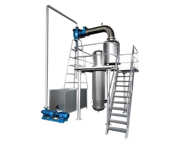 該設備為單效連續式外循環真空濃縮設備,適用于熱敏性物料(如果汁、蔬菜汁、藥液等流動性的物料)在真空低溫條 件下連續蒸發,達到濃縮果汁的效果。